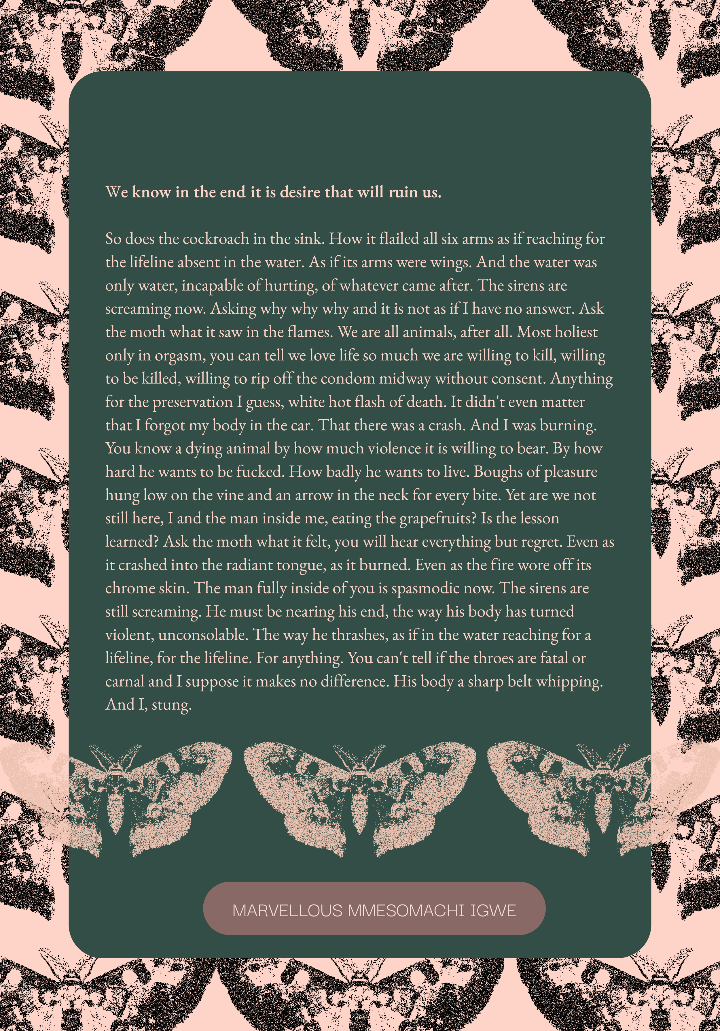 Marvellous Mmesomachi Igwe | We know in the end it is desire that will ruin us.